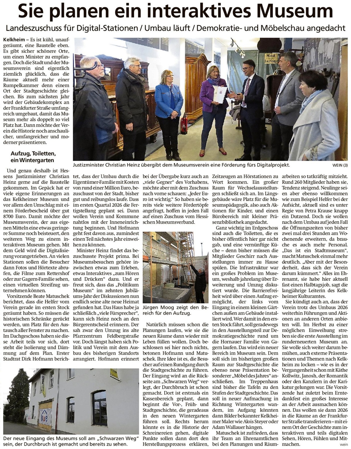 Höchster Kreisblatt: Fördermittel überreicht - Sachstand Museumsumbau