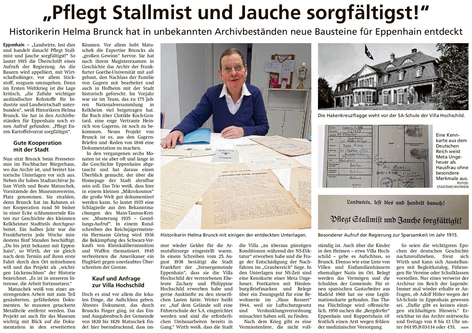 Höchster Kreisblatt: Historikerin Helma Brunck forscht im Archiv über Eppenhain
