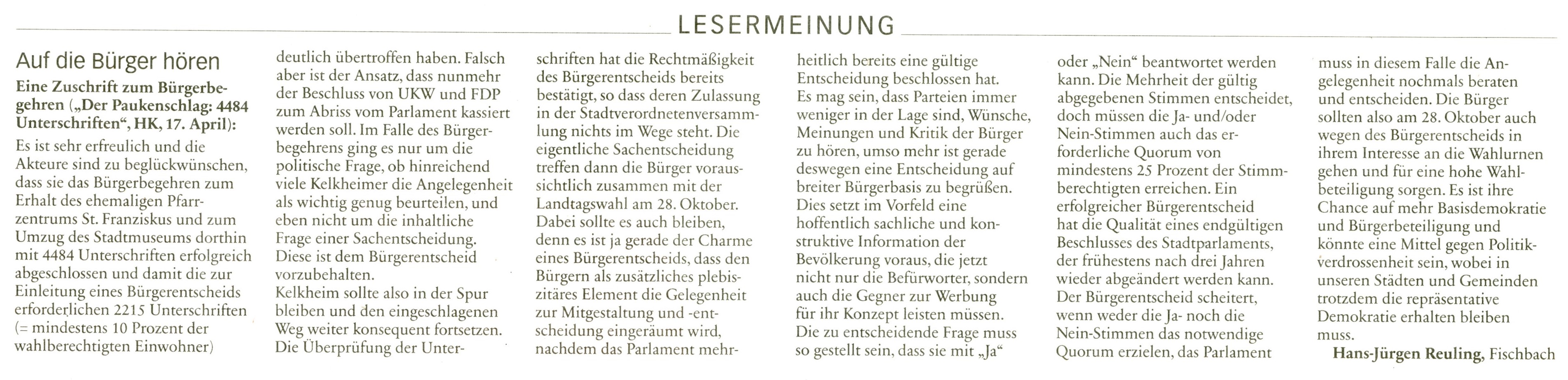 Höchster Kreisblatt Leserbrief: Hans-Jürgen Reuling Bürgerbegehren