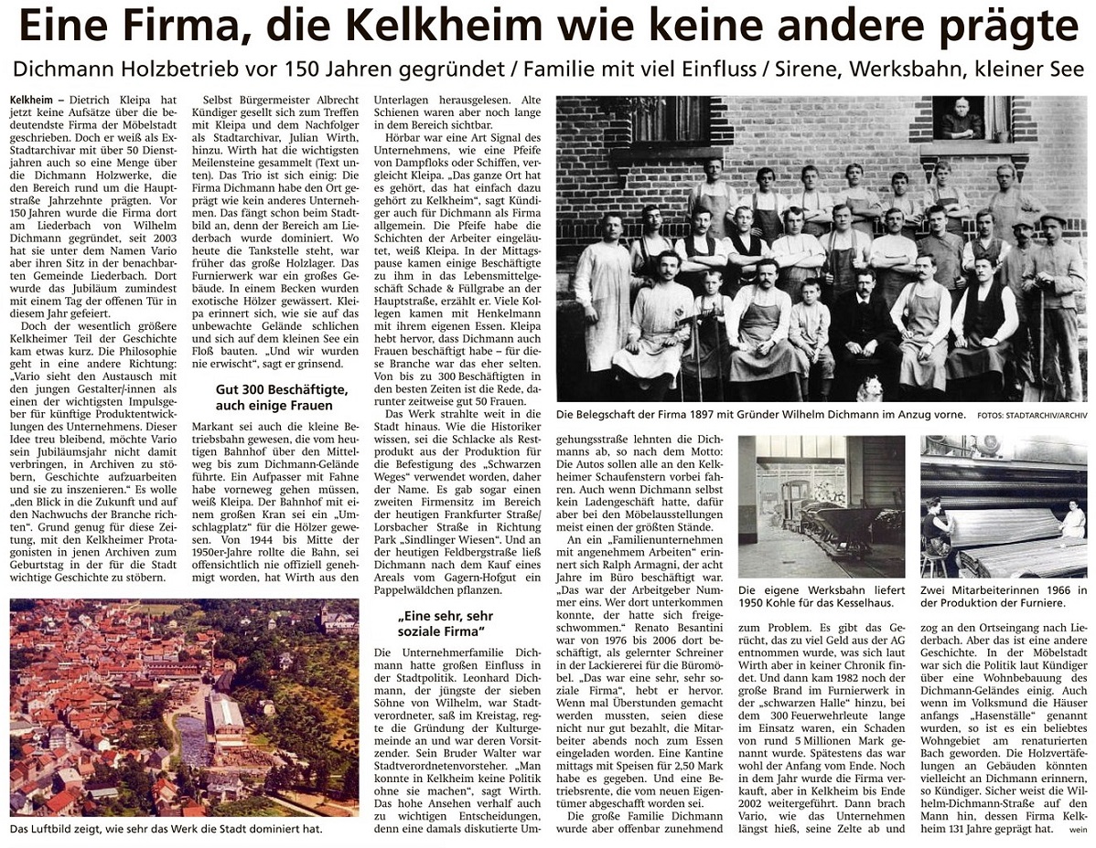 Höchster Kreisblatt: Dichmann Holzbetrieb, eine Firma, die Kelkheim prägte
