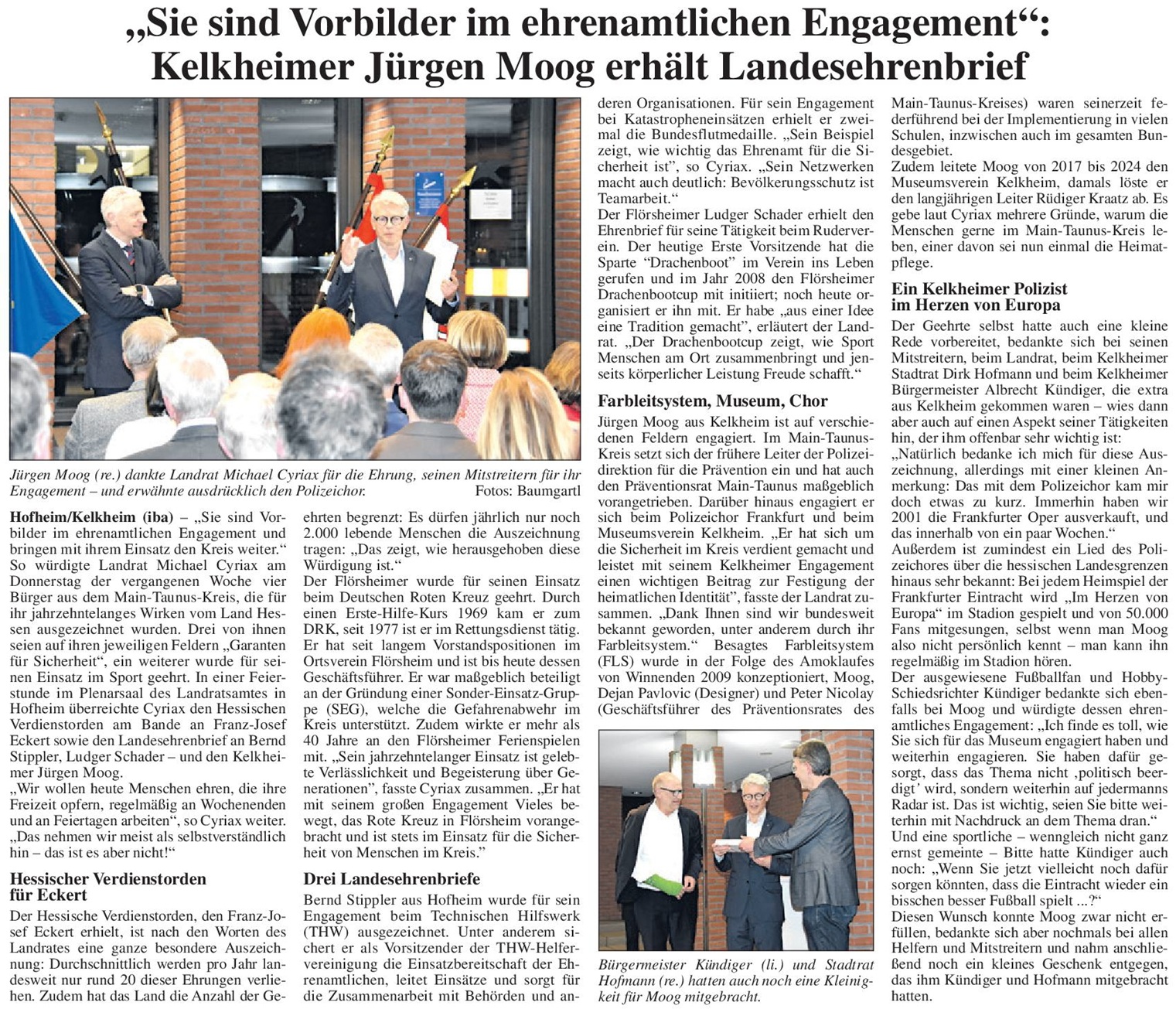 Kelkheimer Zeitung: Kelkheimer Jürgen Moog erhält Landesehrenbrief